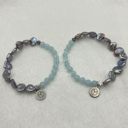Edelsteinarmband Aquamarin und schwarze Süßwasserperle