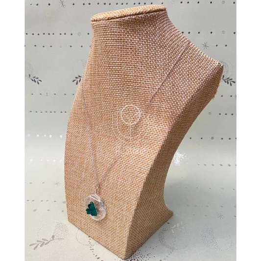 Dioptas auf Bergkristall Scheibe mit Silberöse