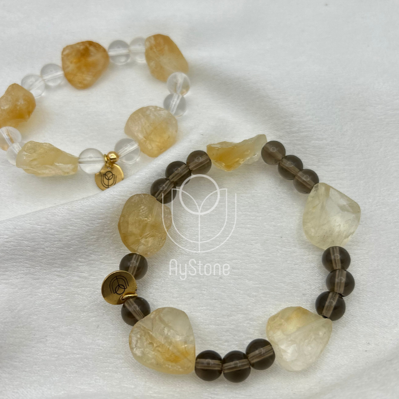 Entdecken Sie unsere handgefertigten Armbänder mit der energetischen Kombination von Citrin und Bergkristall oder Rauchquarz! Diese Edelsteinarmbänder vereinen die kraftvolle Energie des Citrins, die für Freude, Klarheit und Fülle steht, mit der stabilisierenden und erdenden Wirkung des Bergkristalls oder Rauchquarzes.