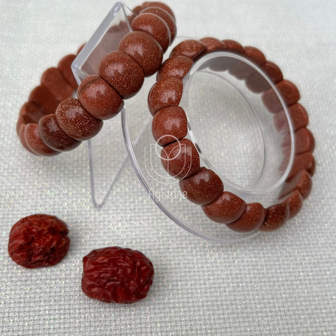Dieses Edelsteinarmband bestehen aus glänzenden Goldfluss Perlen mit einem Umfang von 18 cm.